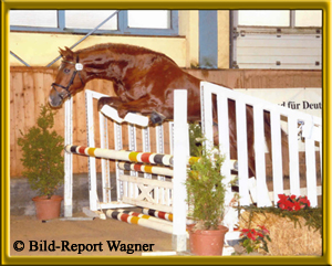 Celler Landbeschäler "Mozart" - Muttervater der "Latona" war seinerzeit (1969) Reservesieger der HLP in W.-Celle mit guten bis sehr guten Noten in den Grundgangarten und der Springanlage.  |