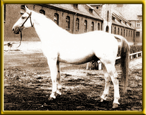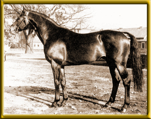 Celler Landbeschäler "Landrat" v. Lasso - Domänenrat - Vater der Latona, galt als vielseitiges Reitpferd und verfügte über gute Rittigkeitswerte.  |