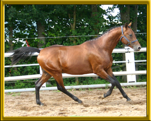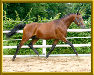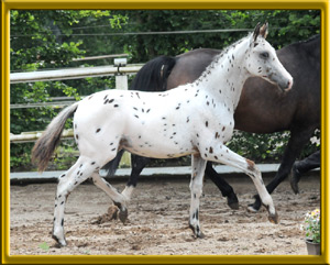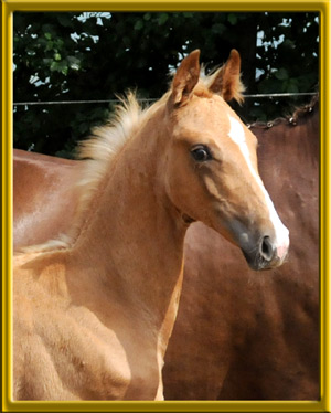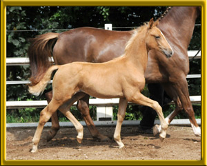Erstlingsfohlen der wunderschönen sehr bewegungsstarken Oldenburger Stute Caprice, die auf der Fohlenschau als Verbandsprämienstute durch den ZfDP ausgezeichnet wurde. Mephisto hat den großzügigen Bewegungsablauf seiner Mutter und die Farbspezialgenetik seines Vaters geerbt. Aufgrund seiner Abstammung ganz was Besonderes für den Dressurreiter, der die Spezialfarben liebt. Preiskategorie: L