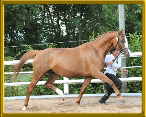 Bewegungsstarke Zuchtstute Wir verkaufen unsere bewährte Zuchtstute Larissa, da wir unseren Zuchtstutenbestand verjüngen wollen und wir aus dieser Stute über genügend weibliche Nachzucht verfügen. Larissa wurde als junge Stute eingeritten und anschließend ausschließlich in der Zucht eingesetzt. Sie brachte uns bisher 5 Nachkommen, die alle vom Oldenburger Zuchtverband prämiert wurden. Zur Zeit ist sie auch wieder tragend von unserem sehr zuchtbewährten Vererber Semper. Das Fohlen, welches die Stute im Bauch trägt kann auf Wunsch im nächsten Jahr auch wieder zurück genommen werden. Halbschwester Eileen, ebenfalls aus der Latona brachte den beim ZfDP gekörten und prämierten Hengst Diabolo.