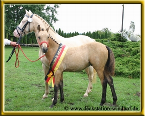 | Dt. Reitpony-Hengstfohlen "Dakota" auf der Bundeszuchtschau des ZfDP am 02.10.2005 in Grasleben. | Er wurde 1a Preisträger