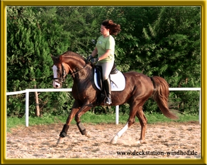© Foto Privatarchiv "Denver", 3-jähriger Wallach von Dreamy's Dayton - Eros AA - Karwendelstein. (Auf dem Foto erst wenige Tage unter dem Sattel). Denver wurde in einen renommierten Dressurstall nach NRW verkauft. |